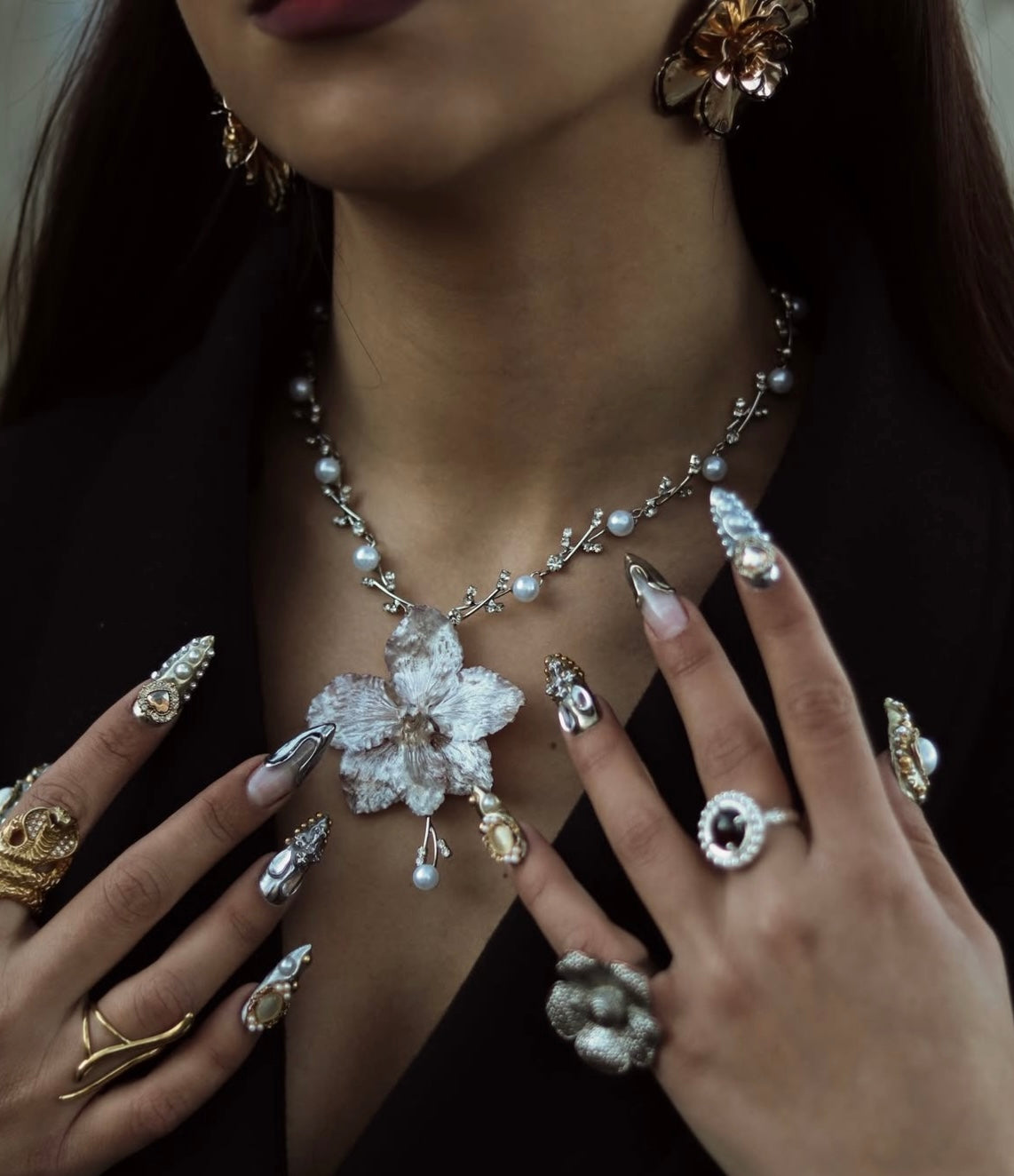 Each piece whispers of fragility and strength, of silence and drama — a hidden secret revealed only to the one who wears it.