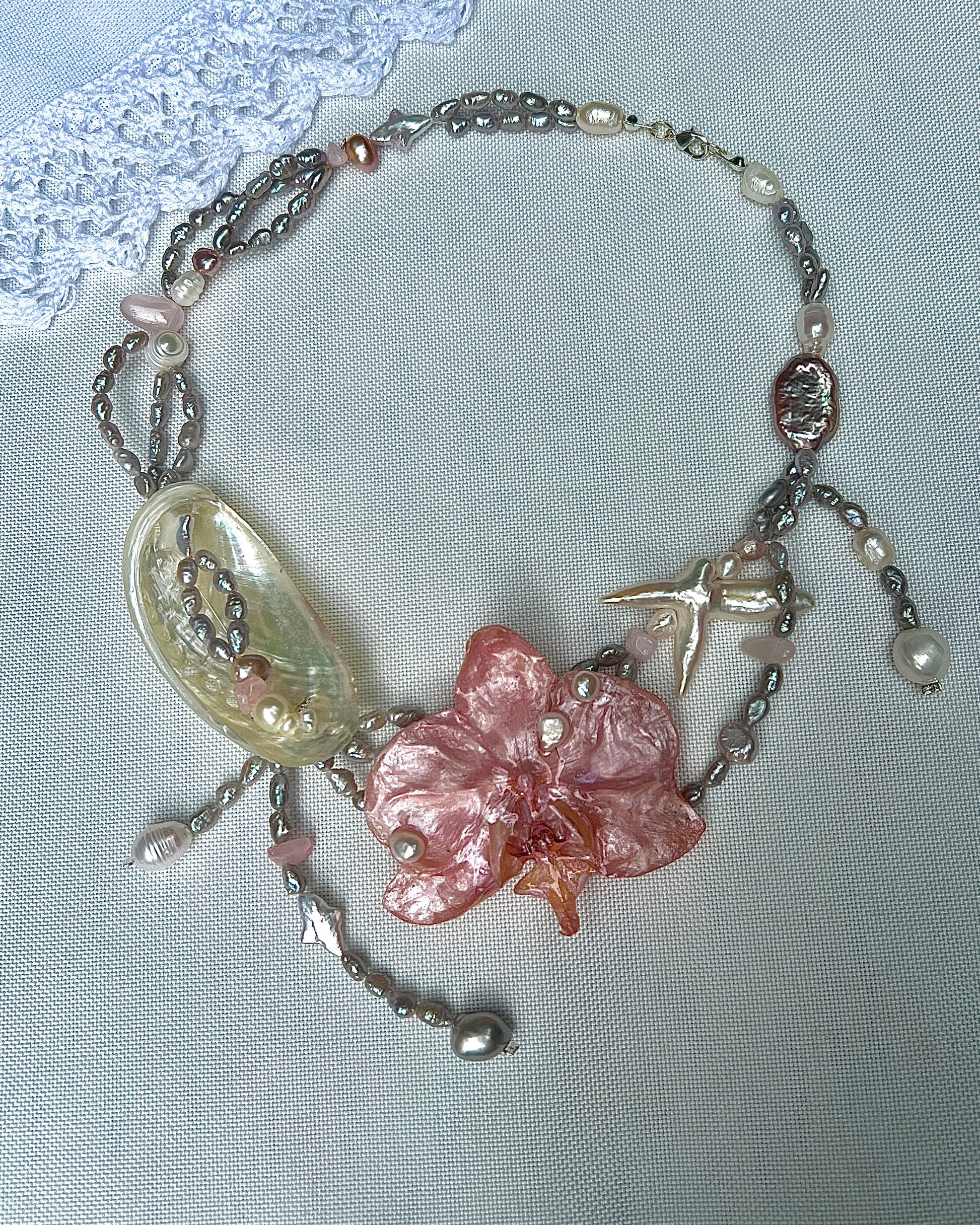 A shiny pink bloom, a drop of water in memoryβs desert, forever shimmering.