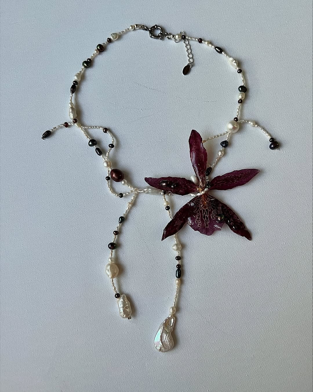 Pearls and garnet rest like fruit of a tree that blooms only after death.