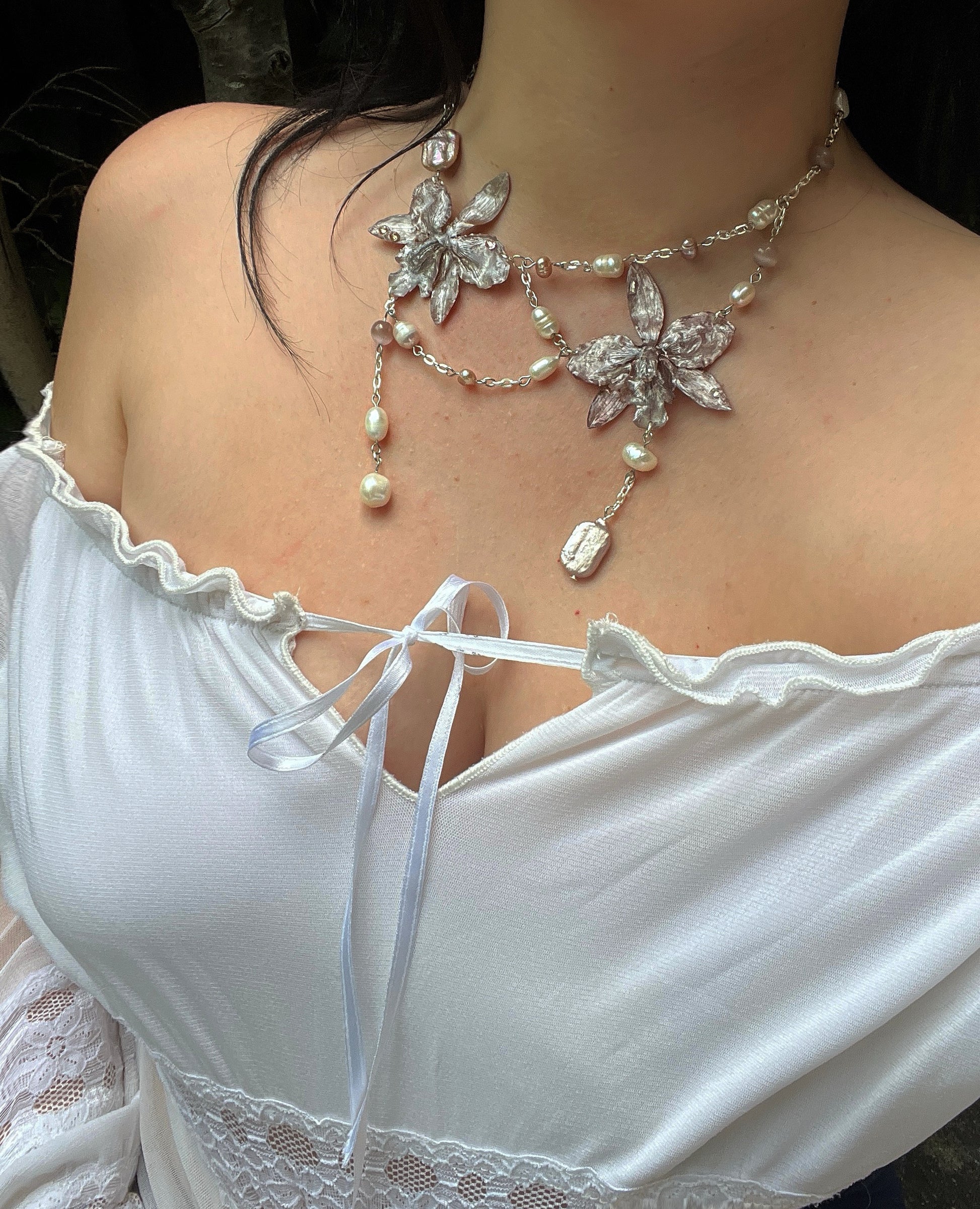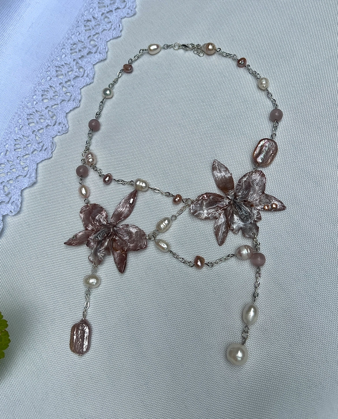 Twin blooms flickering like fading stars, carrying the warmth of endless night.